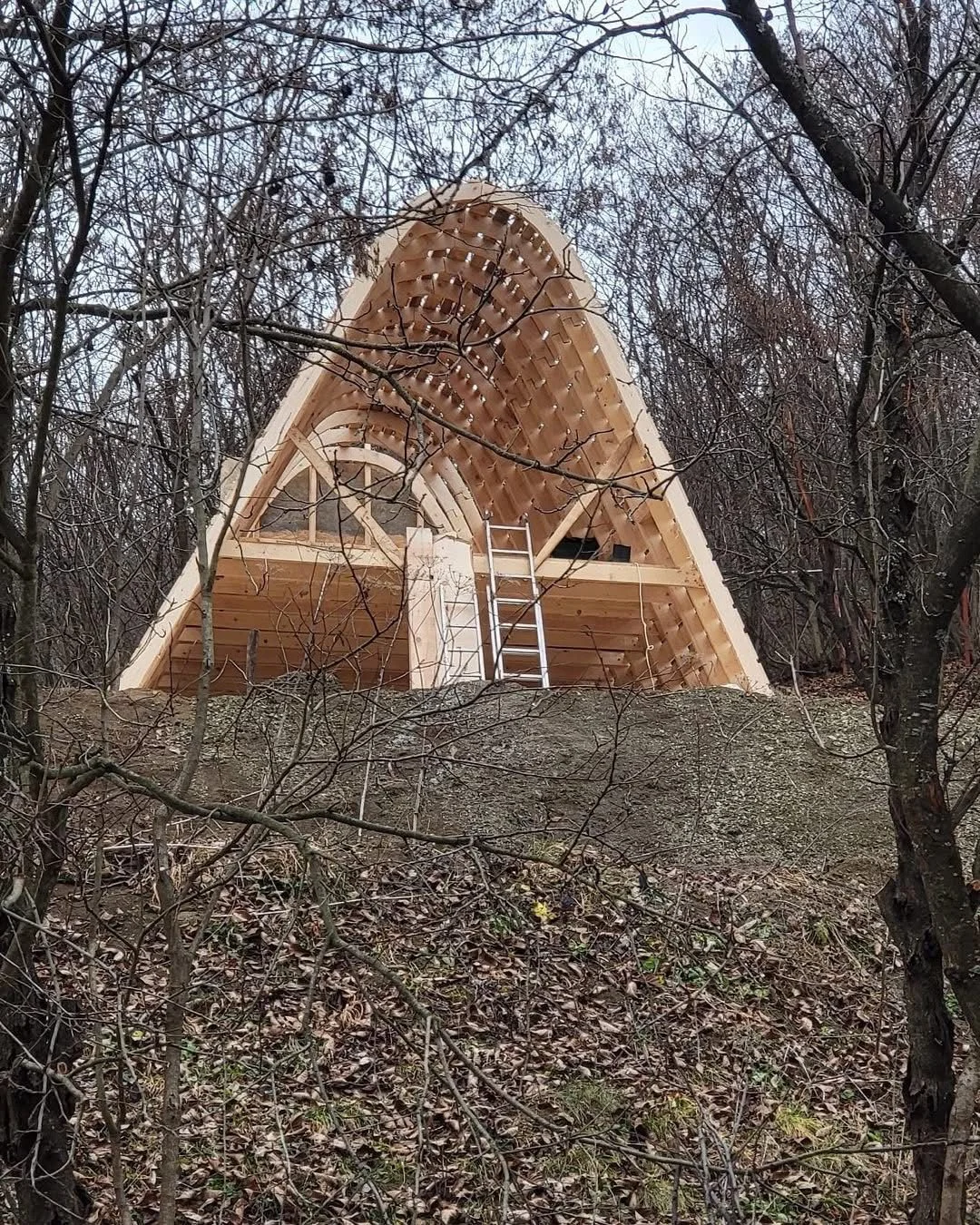 Proiectul A frame explorează relația dintre arhitectură și natură printr-o formă organică, inspirată de curburile naturale ale peisajului. Structura din lemn lamelar curbat definește un volum fluid, cu o prezență sculpturală care se integrează firesc în vegetația densă a terenului.
