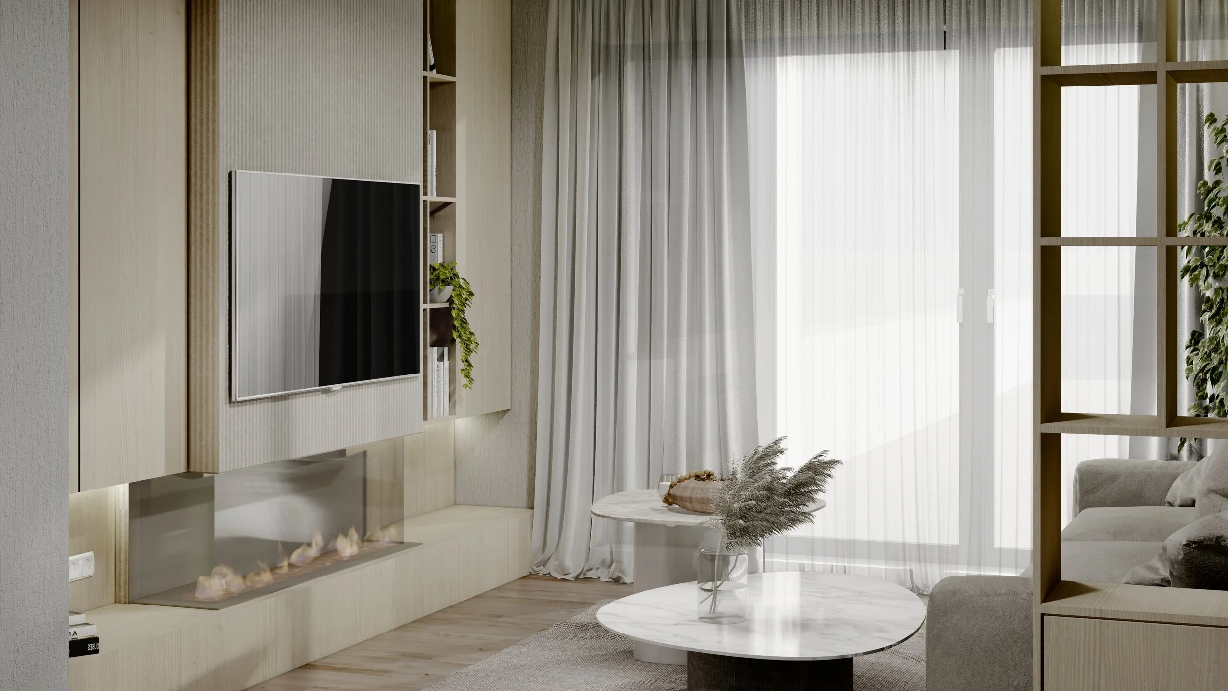 Un apartament de 3 camere conceput ca un exercițiu de echilibru între lumină, textură și liniște vizuală. Designul urmărește o estetică soft-minimalistă, în care tonurile neutre, lemnul deschis și piatra naturală definesc o atmosferă caldă și rafinată.